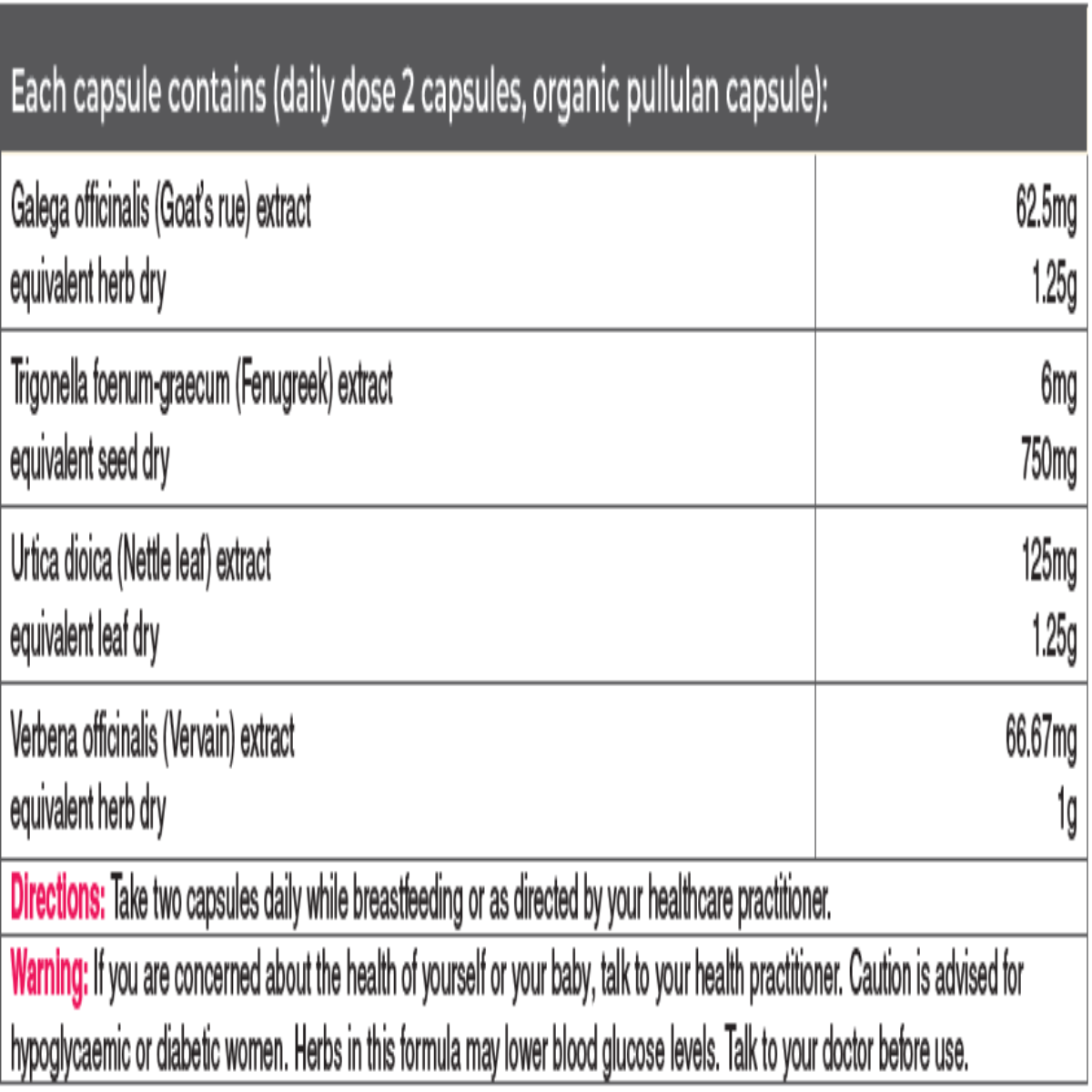 This formula contains the herb Vervain which is traditionally used in Western herbal medicine to both increase milk supply while nourishing the nervous system. Reducing stress can greatly assist when it comes to a successful breastfeeding journey.
