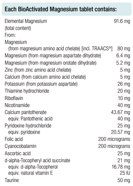 Each BioActivated Magnesium tablet contains: