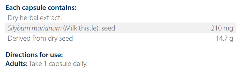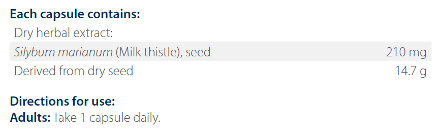 - Standardised to contain 176.4 mg of Silybin per capsule.