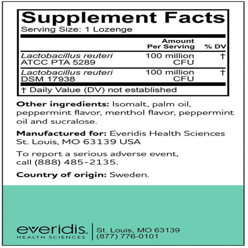 Each tablet contains at least 200 million live Lactobacillus reuteri bacteria until the product’s best-before date.