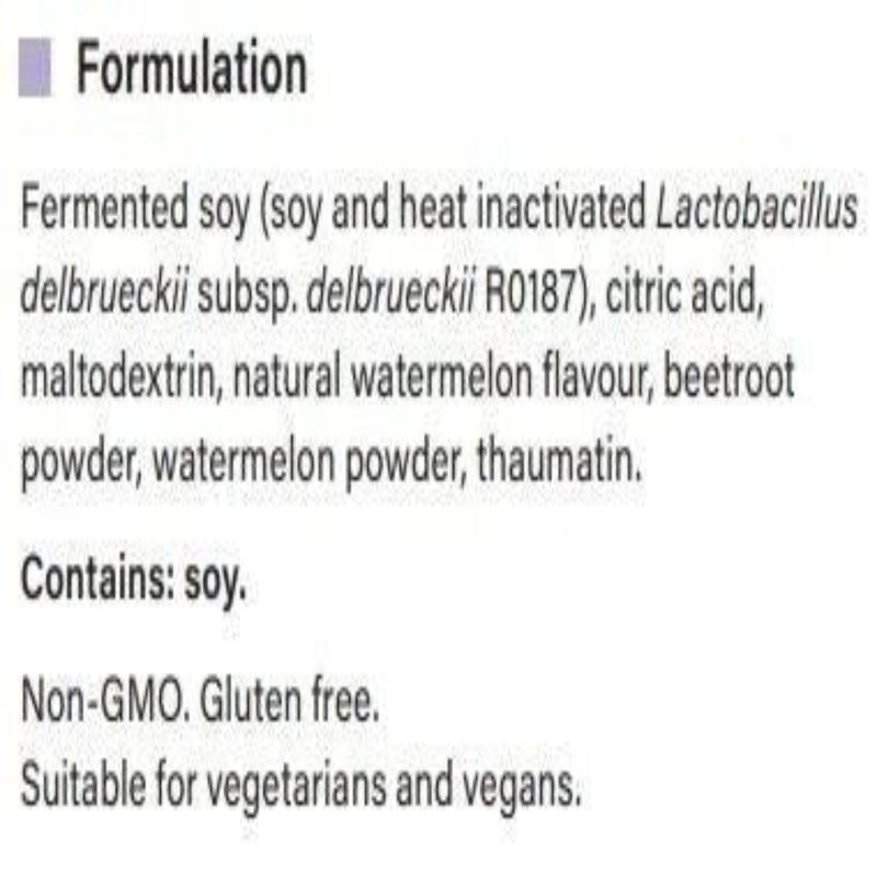 Designed to be taken once daily, it's a natural watermelon flavour powder, contains non-GMO soy, and is vegan, gluten free, and fridge free.